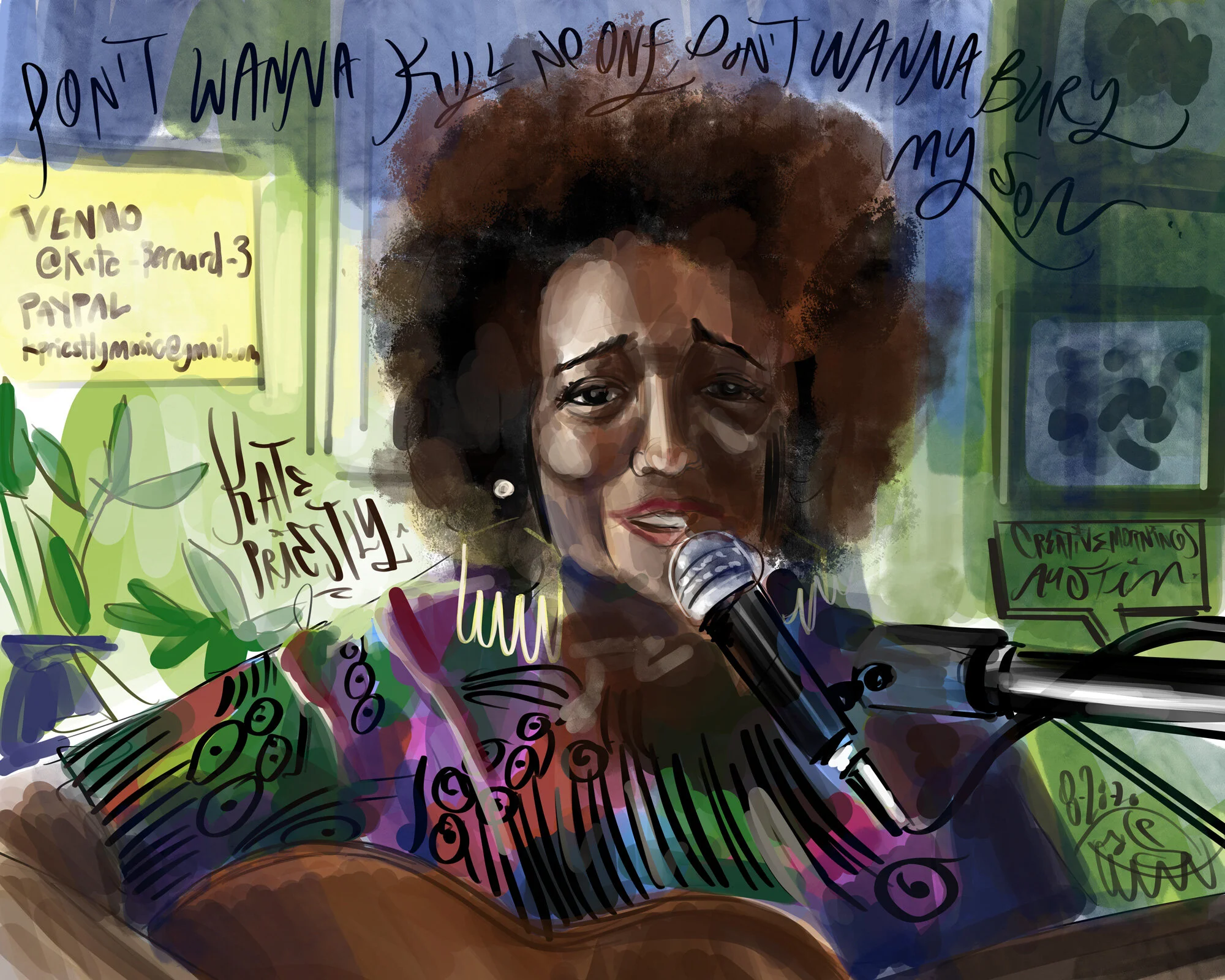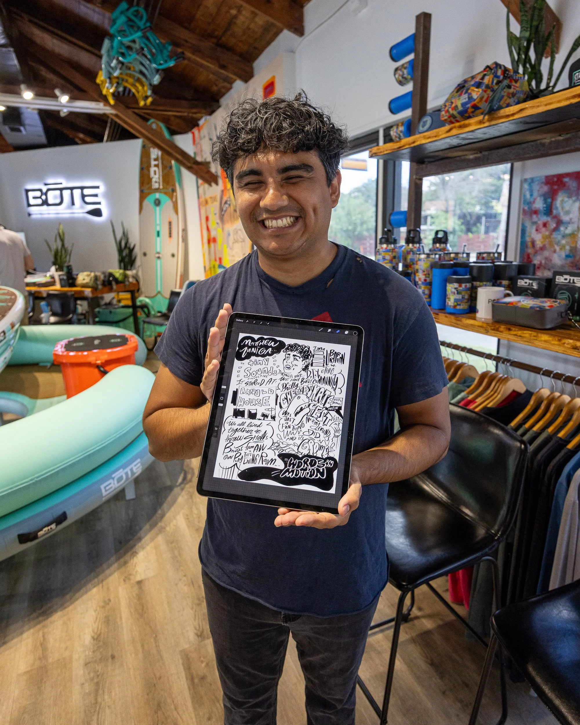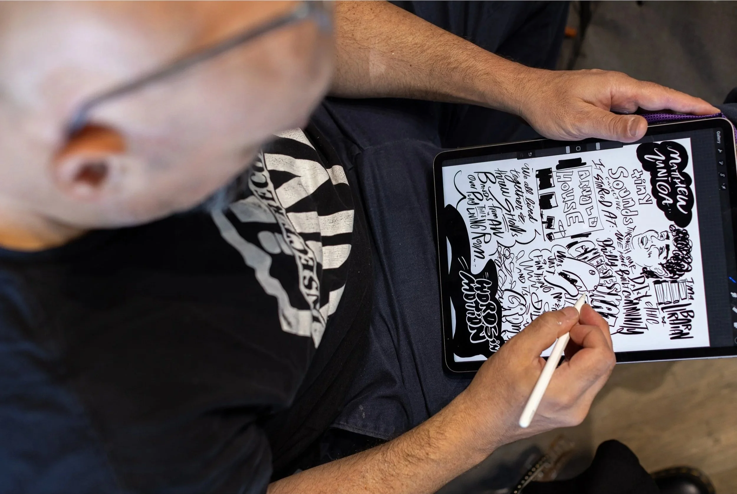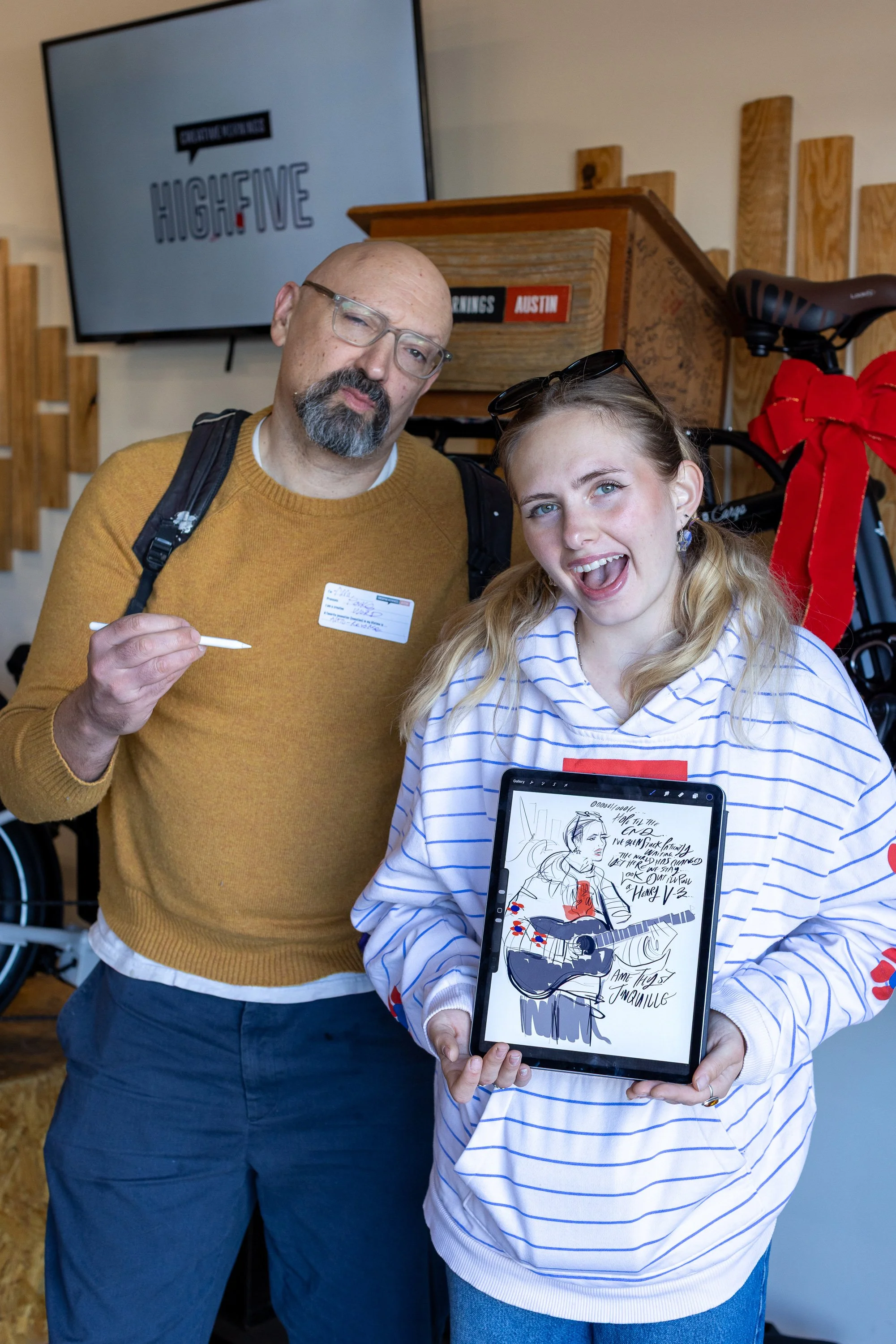 He now draws for the organization in an official capacity & they continue to repost his images but now they also present the guest speakers & musicians with his original drawings as a thank you for the inspiration they bring each month.