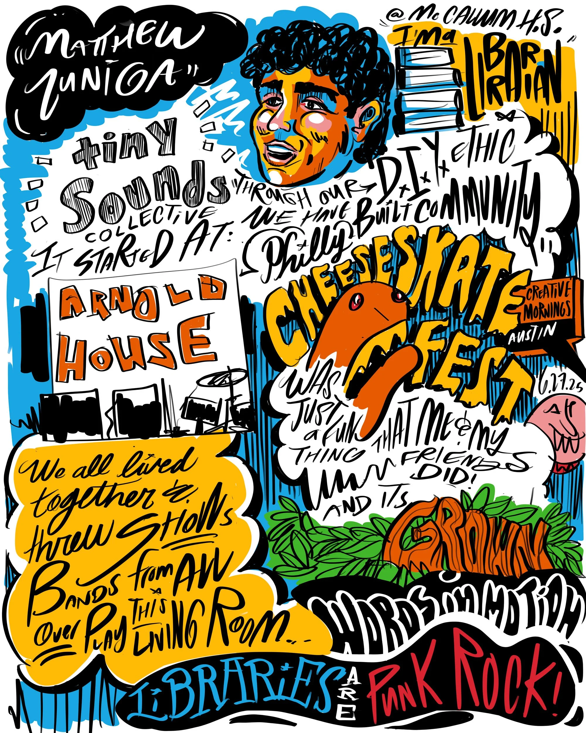 Ami has been drawing @ Creative Mornings in Austin since 2012, first attending purely for the inspiration–the Creative Mornings folks often reposting his imagery as part of their social content stream.